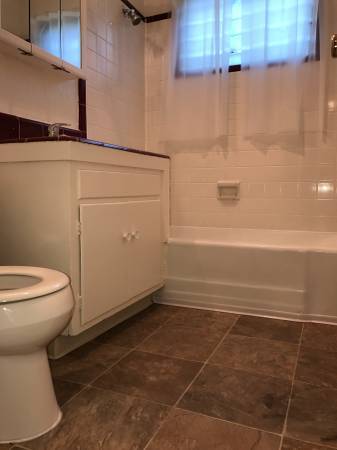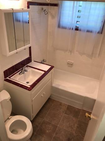 Updated new real wood vanity, sink top, mirror (way nicer than the pic of bathroom in this ad)