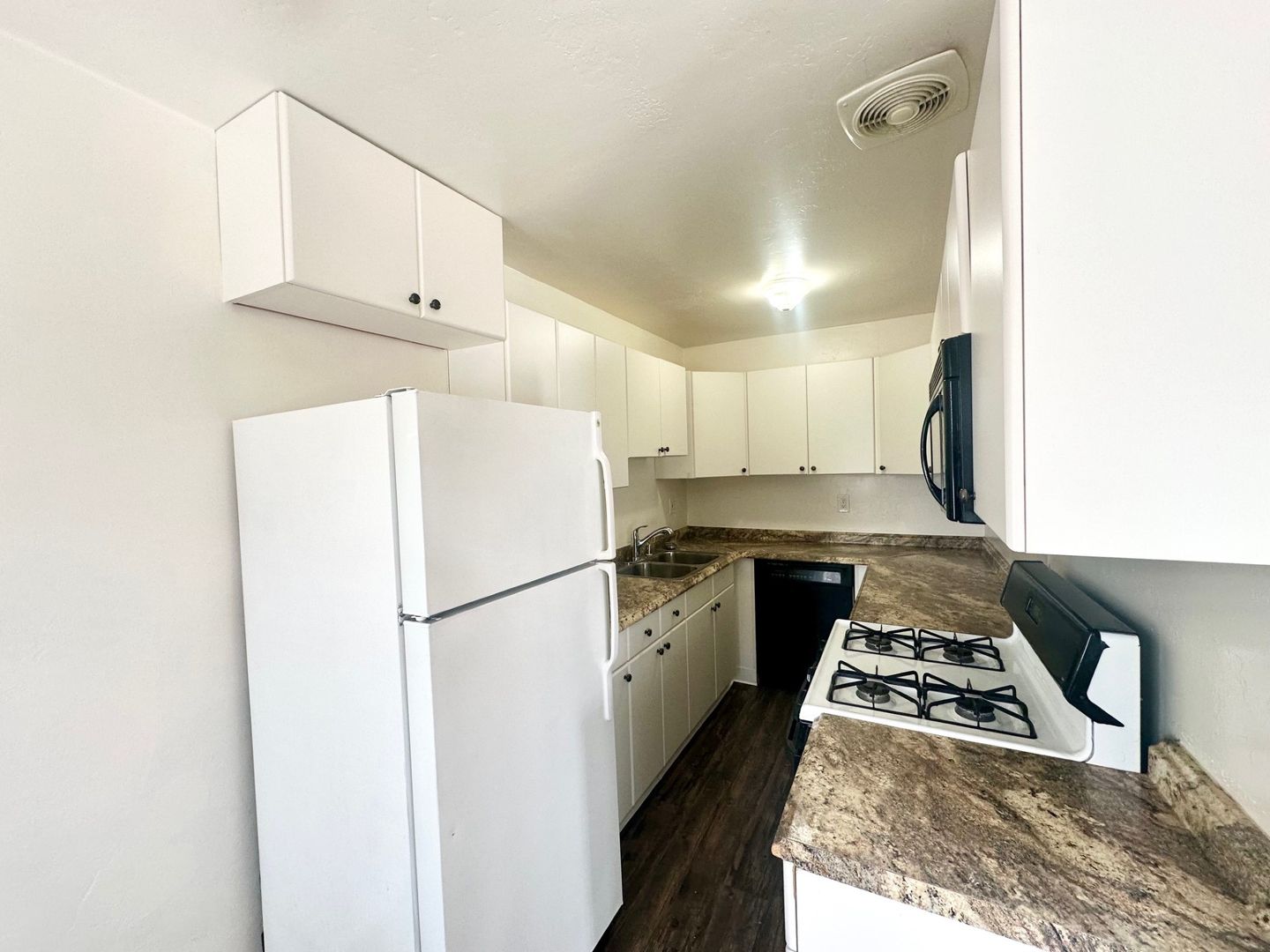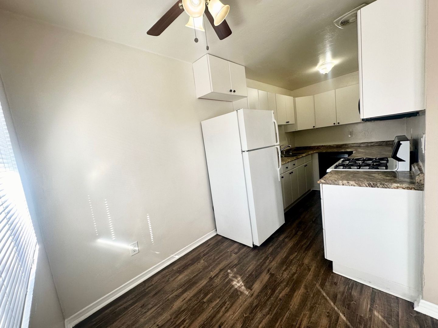 Huge kitchen complete with gas stove, brand new dishwasher, updated microwave, and brand new refrigerator!! All with plenty of countertop space and cabinets.