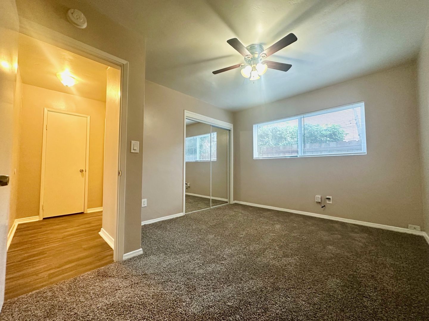 Updated Plush carpet at bedroom with mirrored closet doors.