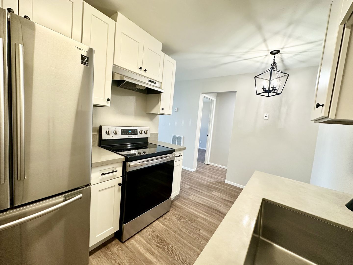 Updated stainless steel refrigerator, electric stove, and range hood!