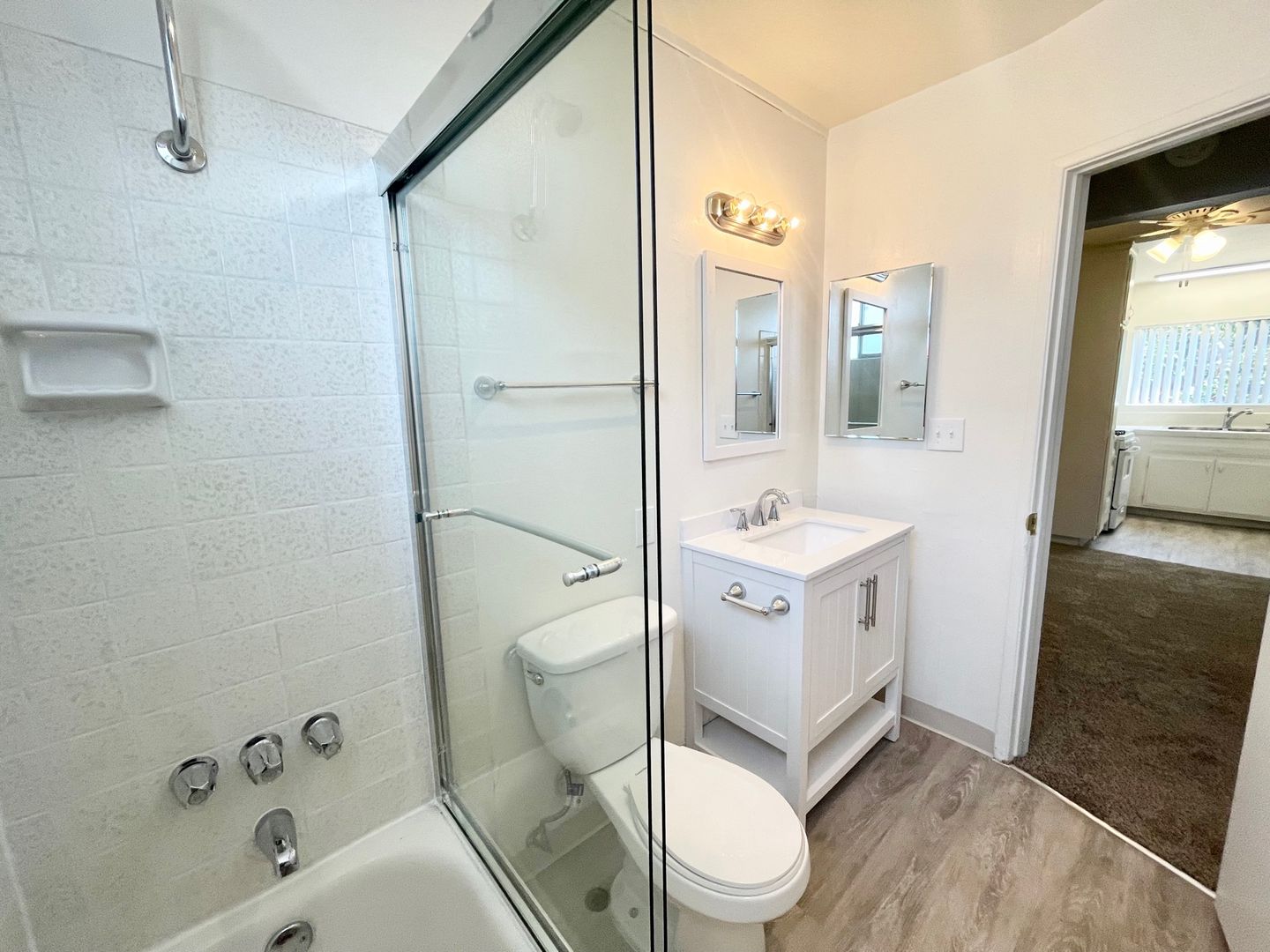 Updated Plank flooring at entry, bath, and kitchen.